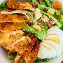 Romaine, topped with parmesan cheese, bacon bits, croutons, boiled egg and Caesar dressing