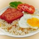 For reference: Savory fried rice, garlic, egg, and a flavorful meat, perfect for breakfast any time.