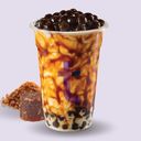 For reference: Sweet, creamy beverage with chewy tapioca pearls and rich brown sugar flavor.