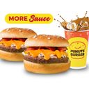 Buy 1 Take 1 Premium Sandwich with 100% all-beef patties, sliced american-style cheese, roasted onions & premium ketchup served with refreshing Minute Burger drinks.