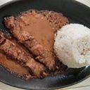 For reference: Crispy fried meat served with flavorful rice, creating a satisfying and hearty meal.