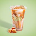 Creamy milk with Biscoff cookie bits, topped with sea salt cream mousse, over ice