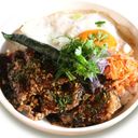 Garlic rice and slab bacon, topped with crispy garlic chips, scallions and soft scrambled egg served with chili crunch
