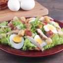 A satisfying breakfast option featuring our savory sausage, accompanied by salad, eggs, and focaccia bread.
