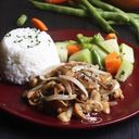 Roast beef slices, sauteed onions, and mushrooms in rich brown sauce. Comes with buttered veggies.
