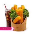 1 Cheese burger, 1 chessy hotdog sandwich, regulars fries, 6 pieces cheese sticks & 2 beverages