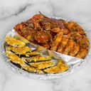 Grilled eggplant, peeled and sliced with chopped onion and tomato tossed in house dressing and served with bagoong alamang and salted egg.