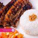 For reference: Fried rice, garlic, egg, and marinated meat served for breakfast or any meal.