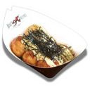 Toppings: mozzarella, cheddar, cream cheese, bonito flakes, aonori seaweed, japanese mayo, takoyaki sauce. Fillings: octopus, cabbage, pickled ginger, green onion. 6pcs.