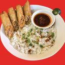 For reference: Crispy rolls filled with seasoned meat and vegetables, perfect for dipping and sharing.
