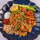 The Shrimp Pad Thai is delicious—we love it! The Chicken Pad Kra Pao is also great. The portions are generous, though a bit more for the Pad Thai would be perfect.