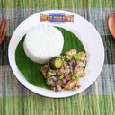 Single serving of Beef Sisig with Rice and Egg