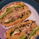 Lettuce, cucumber, tomatoes, onion tuna, boiled egg, pickle relish, Japanese mayo & three layers of home made waffles
