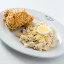 A combination of creamy macaroni salad and Biggs crispy chicken.