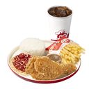 Meaty, tender, chicken fillet slices with rich, creamy sauce with peppery kick. Served with the meatiest, cheesiest and sweet-sarap Jolly Spaghetti and drink.