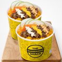 For reference only: Chicken shawarma served in a rice bowl with a side dish.