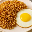 Spicy, savory Korean-style noodles in rich broth, topped with sausage slices and a sunny-side-up egg. Served hot in a golden pot — comfort food with a kick!