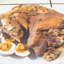 Yummy sisig with egg, onions, green chili, and seasonings.