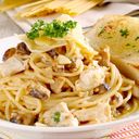 Creamy and savoury white sauce with chicken chunks, shiitake mushroom & parmesan cheese