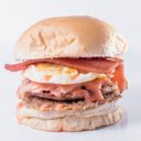 Ham, egg, cheese & bacon burger