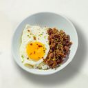 Pork sisig and egg over your choice of rice