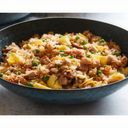 For reference: Savory fried rice topped with sweet, caramelized meat and a fried egg.
