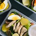 Romaine lettuce, marble potatoes, grapes with chicken toppings & comes with dressing