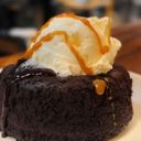 Our Best Selling Chocolate Cake Warmed with Chocolate Ganache Topped with Ice Cream and Caramel Drizzle