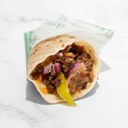 For reference: A delicious and satisfying shawarma wrap filled with a generous portion of assorted meats.