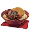 Crunchy Chicken Chop with Asian BBQ sauce on top of egg fried rice.