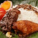 Marinated pork cutlets sauteed in lots of garlic, onions, black peppers, laurel leaves, seasoned with soy sauce & vinegar.