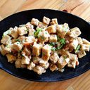 deep fried tofu cubes in mayo, onions, chopeed chilli