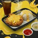 Tender chicken chunks topped with our signature rich cheese sauce. Served over hot steamed rice, soup of the day and 16oz drinks of your choice.