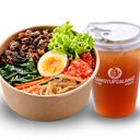 Combines the classic Korean dish bulgogi (thinly sliced and marinated beef) with a bowl of rice and various vegetables. The beef is typically cooked until tender and served with a sweet and savory sauce, making for a delicious and balanced meal.