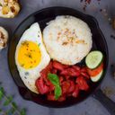 3 pcs skinless longganisa. Served with fried rice and egg. Comes with vinegar and ketchup.