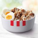 Funshots topped with KFC signature gravy with mashed potato and a generous serving of steamed rice, paired with your choice of drink.
