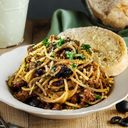 Spaghetti noodles enveloped in a sauce made with the goodness of homemade chorizo & chili flakes