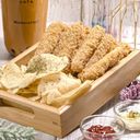 Sliced soft cheese and mashed potato, wrapped and deep fried in spring rill wrappers.