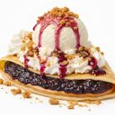 Authentic crêpe with ice cream, graham crumble, whipped cream, and warm sautéed mangoes