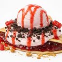 Authentic crêpe with creamy strawberry ice cream, luscious strawberry whipped cream, and a sprinkle of Oreo crunch