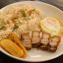 Delivered hot, vegetables are fresh and not overly cooked. Shrimp paste used is not too salty, with slight hint of garlic. Topped with pork bits and chicharron.