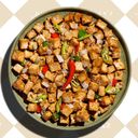 Max's fried chicken & chicken liver chopped to bits and cooked with a serving of onions, celery and mayonnaise topped with sliced chili fingers. Good for 2-3 pax