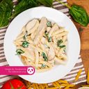 Creamy alfredo sauce with tender chicken over perfectly cooked pasta