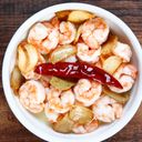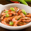 For reference: Shrimp cooked in a rich crab fat sauce, offering a savory and indulgent seafood dish.