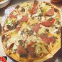 Beef mushroom pizza burger, all meat pizza 10', Hawaiian pizza 10' & Coke 1.5