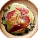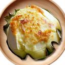 Traditional galapong bibingka elevated with smoky ham and rich salted egg.
