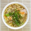 Thick fresh egg noodles, shrimps, chopped vegetables
