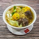 For reference: Beef brisket and wonton noodle soup with egg and drink.