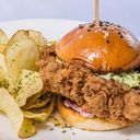 Big, boneless fried chicken filet, cabbage coleslaw & pickled onion relish