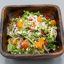 Mixed greens, strawberry dressing, almonds, quinoa, feta, goji berries, tomatoes, roasted squash & sliced red onion - vegetarian, refined sugar-free dairy-free option: remove feta